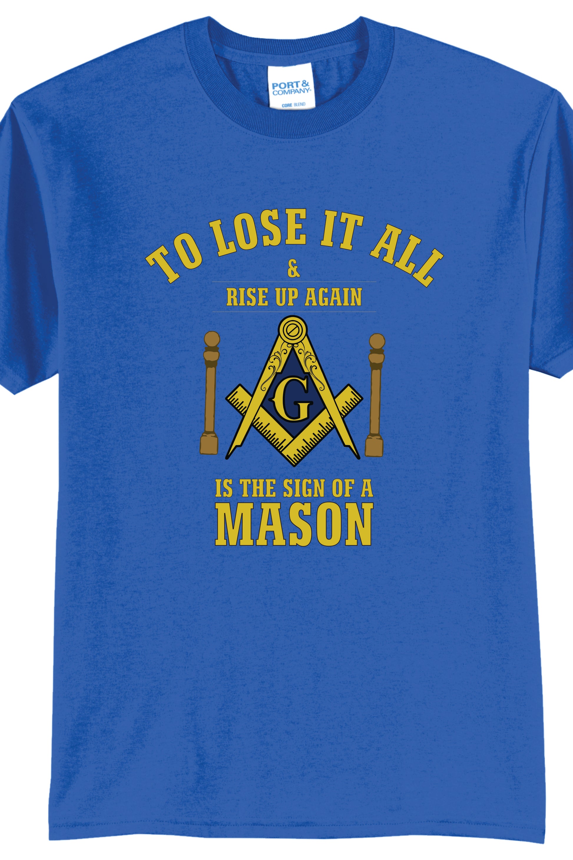 # Lose It All To lose it all and rise up again—that's the true mark of a mason. This tee celebrates the strength found in starting over, the resilience that comes from hitting rock bottom and building back up. It's for the builders, the grinders, and the ones who know that real power comes from reconstruction. Wear it with pride as a reminder that every fall is just the foundation for something greater. Because true mastery isn't about never losing—it's about rising every single time.